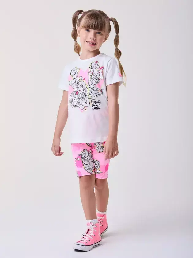 O conjunto infantil rosa das princesas é perfeito para as pequenas que adoram um visual delicado e encantador. Com tons suaves de rosa e uma estampa de princesas, ele cria um look mágico e cheio de encanto. Confortável e bonito, esse conjunto é ideal para os dias de lazer, garantindo fofura e estilo.